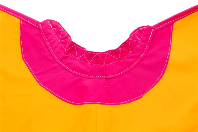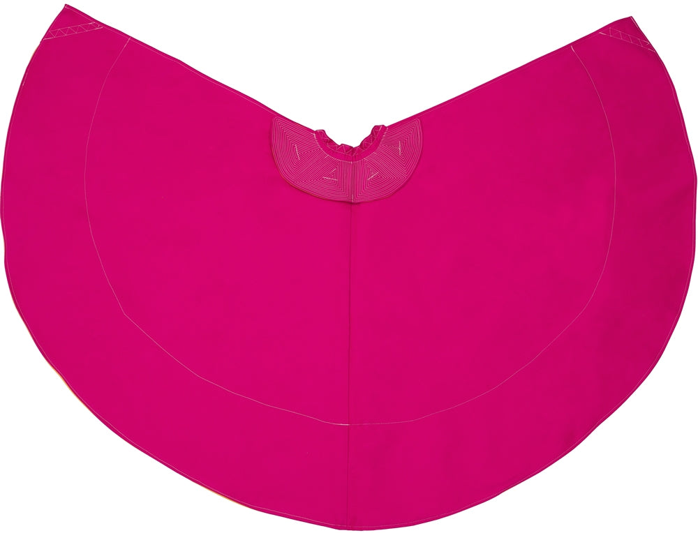 Incluye bordados en la esclavina y presenta el color posterior en oro, característico de los capotes tradicionales.